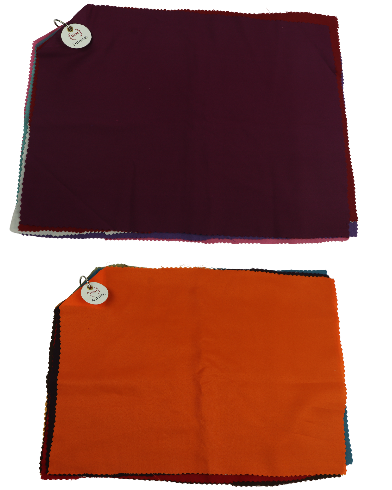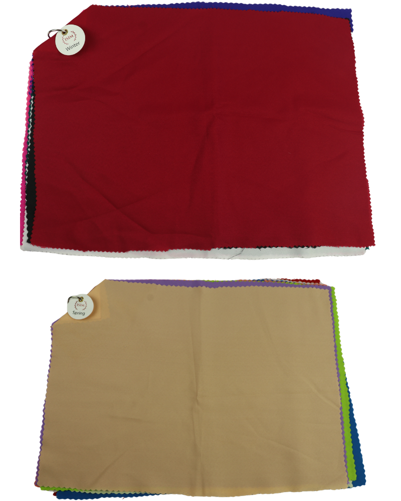 Each seasonal drape includes 8 carefully selected fabric colors, giving you enough contrast and range to clearly observe how different hues interact with your client’s natural coloring. When draped near a client’s face, these colors either harmonize beautifully with their natural coloring or create a discordant effect—making it easy for both you and your client to see which season suits them best. This visual demonstration is powerful and creates “aha moments” that clients remember long after the consultation ends.